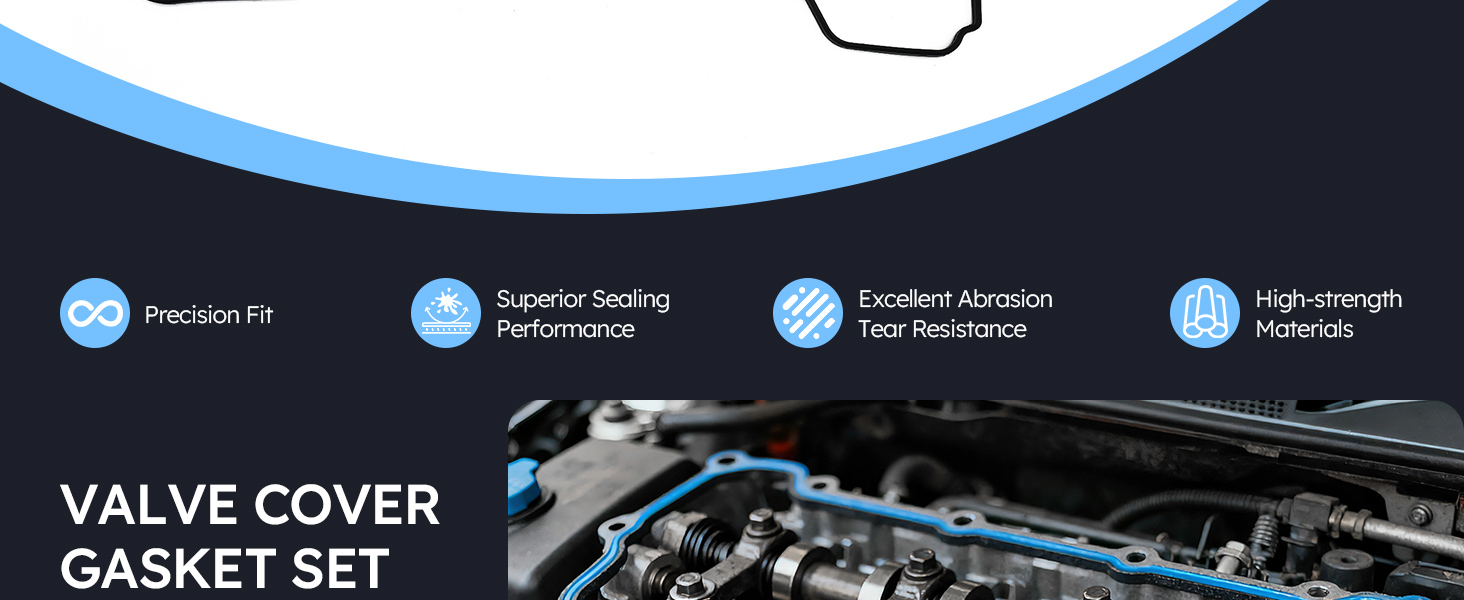 [Easy to Install]: OEM design, direct fit.Each gasket, no matter how small, is engineered to exacting standards with proprietary design.The gasket set features standard dimensions, allowing for simple and quick replacement without the need for complex tools or modifications.Make sure both mating surfaces are clean, flat, and free of burrs or debris during installation.Package Includes: 1x Valve Cover Gasket, 1x Rock Cover Gasket