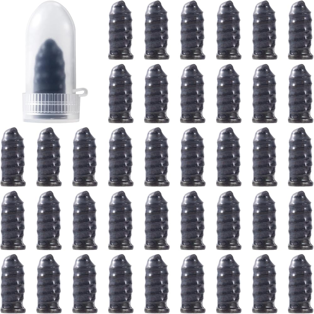 DC,CLISENCE 40 Pcs Tire Repair Rubber Nail Kit, Screws in Tire Plugs, Spiral Puncture Vaccum Tires Kits, Self Service Screw Plug Fast Tool for Auto, Motorcycle, Bike (Black, 2 Sizes)