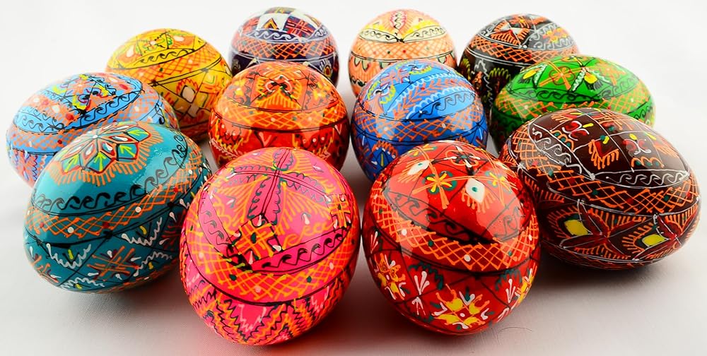 The eggs are hand-made of wood and are about the size of chicken eggs. You will get a beautiful product with the pure and light energy of the Ukrainian Carpathian Mountains. Height approx. - 2.4", Diameter approx. - 1.8"