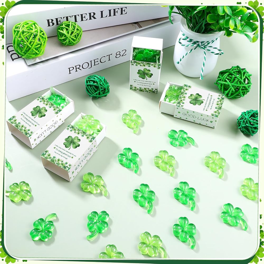 30 mini shamrock resin figurines (15 light green + 15 dark green)