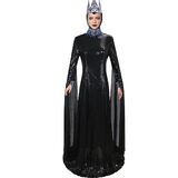 Evil Queen Costume Adult Princess Snow Villains Costume Robe Dress with Hooded Cloak Crown Belt Adult Halloween Cosplay Outfits; Women Evil Queen Costume Sequins Dress with Rhinestone Chocker Bracelet Rings Halloween Queen Cosplay Costume for Adult