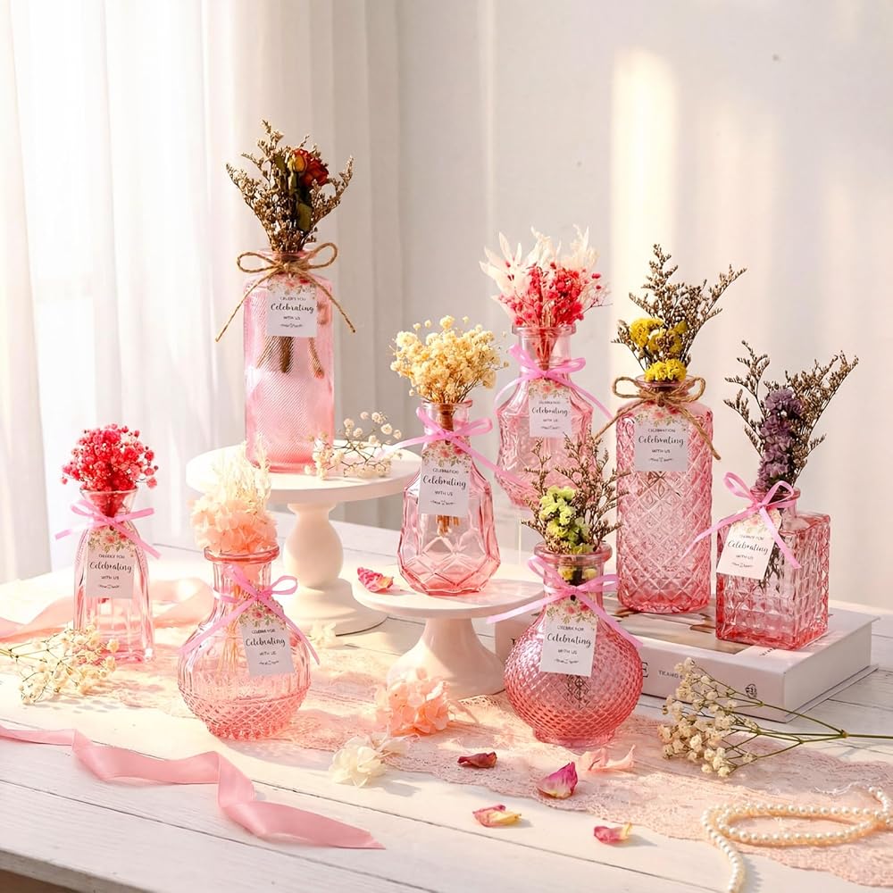 Show appreciation with the included thank you cards, made from durable materials. These cards pair perfectly with the pink bud vases, adding a personal touch to gifts or decor arrangements.
