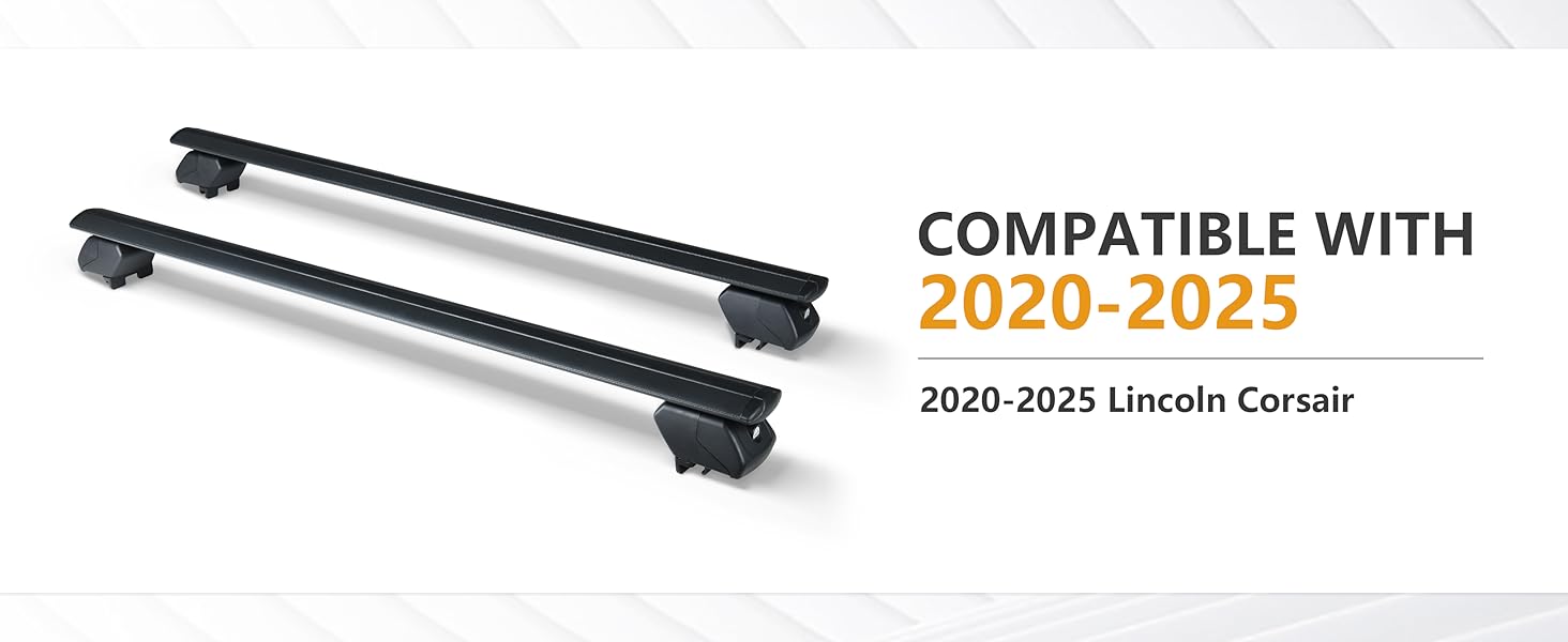 【Vehicle Fitment】: Our Roof Rack Cross Bars compatible with 2020-2025 Lincoln Corsair with Side Rails. Please check your vehicle's model and year before purchase.