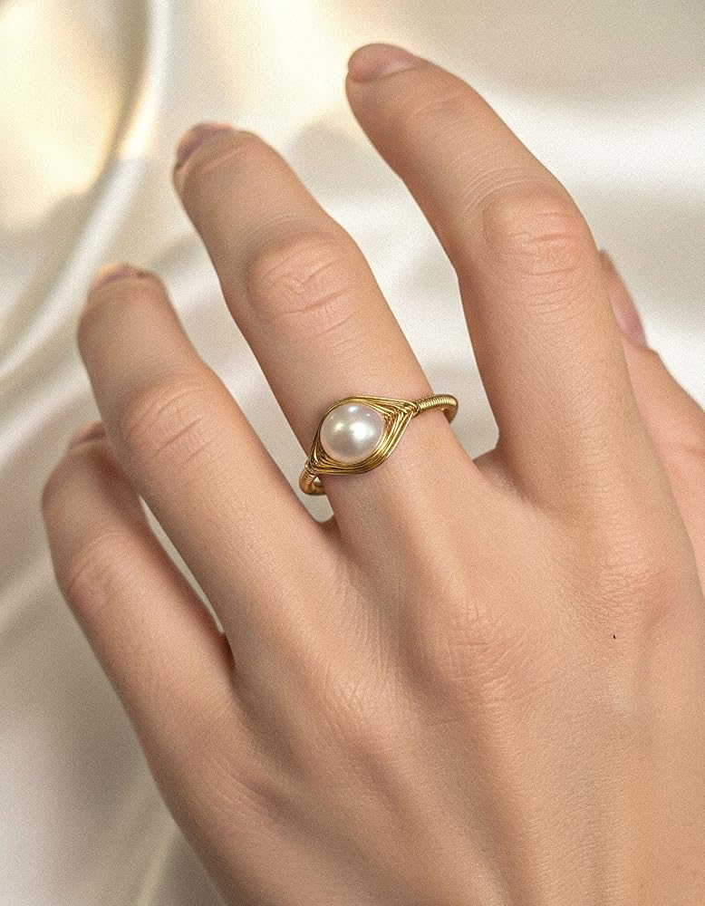 Vintage Rings for Women: The handwired design and pearl make it a retro vibe, boho jewelry, unique rings for women