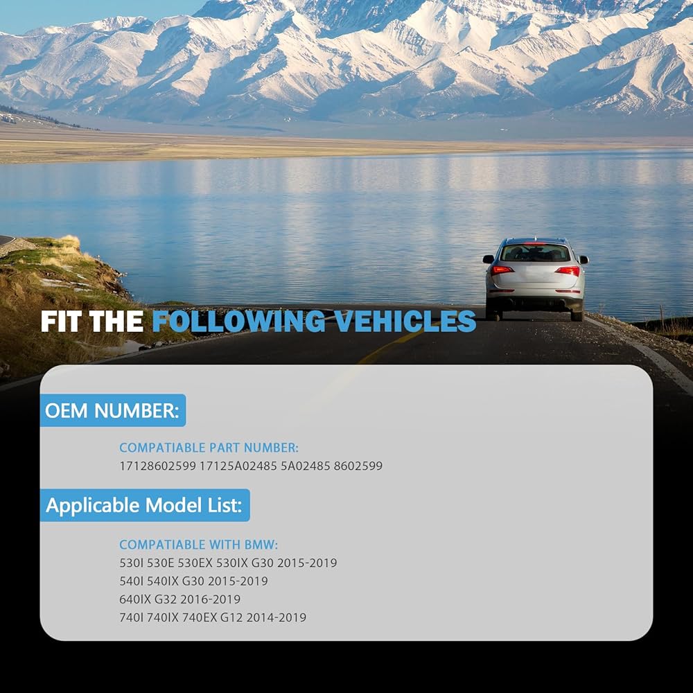 Compatible with BMW 5 series: 2015-2017 G30, 2016-2017 G31 G38.Please check your vehicle in the Amazon Fitment Filter System in the top left corner. Please make sure to match the exact part numbers between this part and the part that you are replacing.This radiator coolant hose is a direct replacement for the factory radiator coolant hose.Simply remove the factory radiator coolant hose and replace it with the new one.