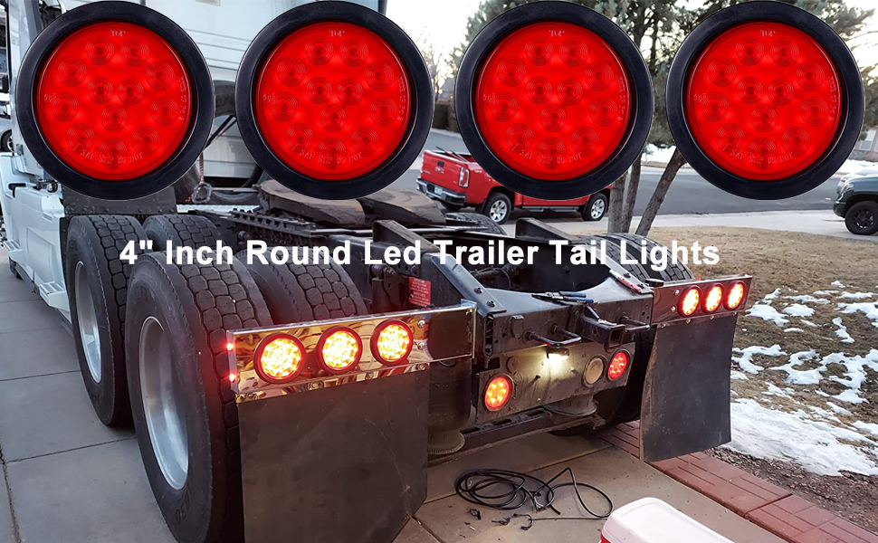 This 4 inch round semi trailer lights have 12 LEDs each, providing great night vision visibility of your vehicle on the road! These round led trailer lights are approx. 5-1/8" (13cm) diameter Grommet Ring and 4" inner diameter and 1-3/16" (3cm) Thickness;
