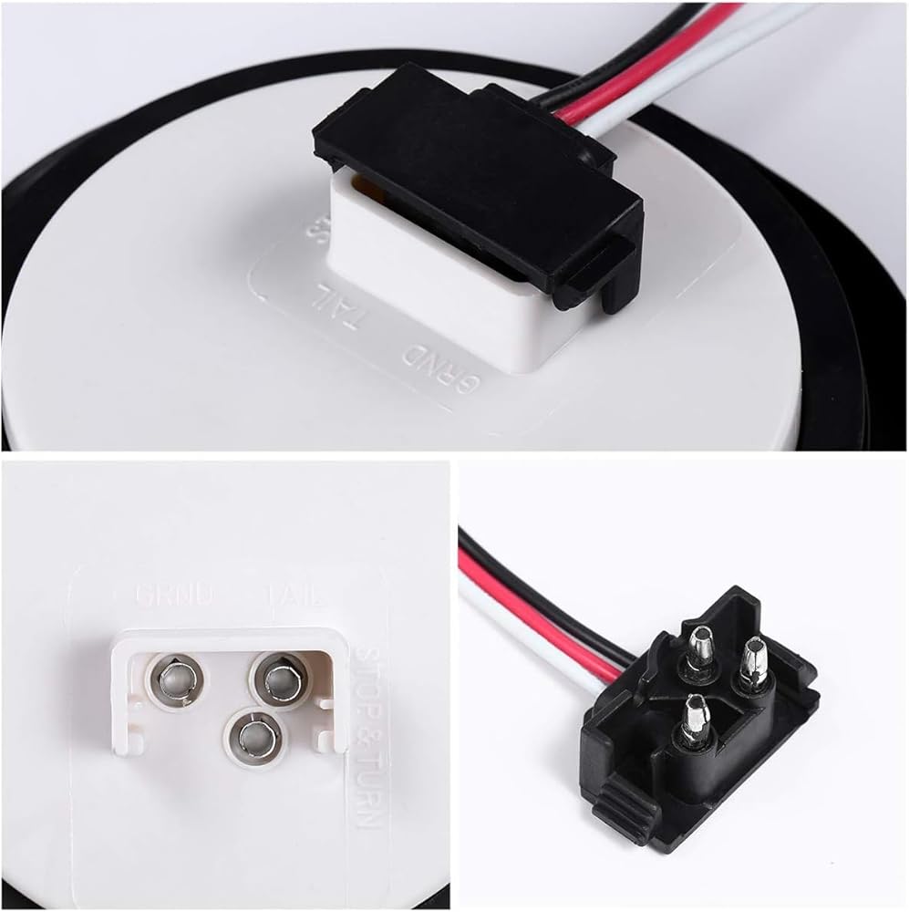 This 4 round led tail lights includes 3 prong right angle pigtail with 3 Wires for Dual Function Lights: White is the ground, red is the high brightness for stop turn light brake lights and Black for low brightness as tail light & running light;