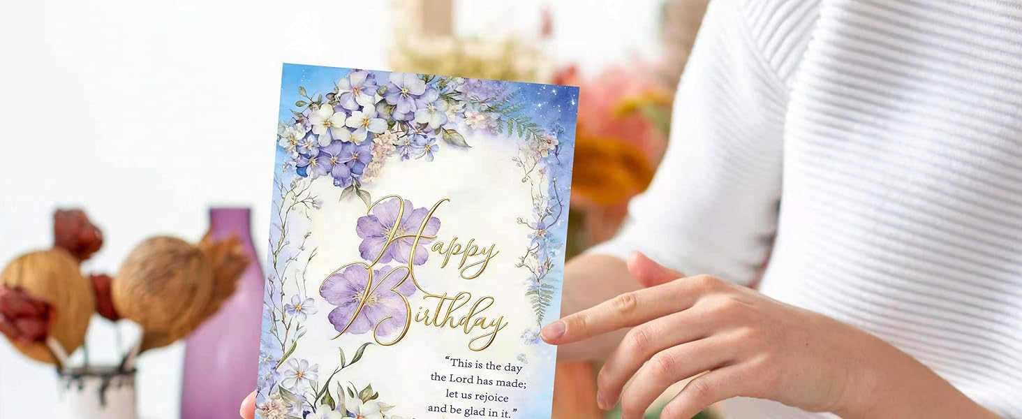 A faith-centered Religious birthday card gift designed to celebrate God's love, joy, and blessings on a special day, sharing heartfelt Christian blessings