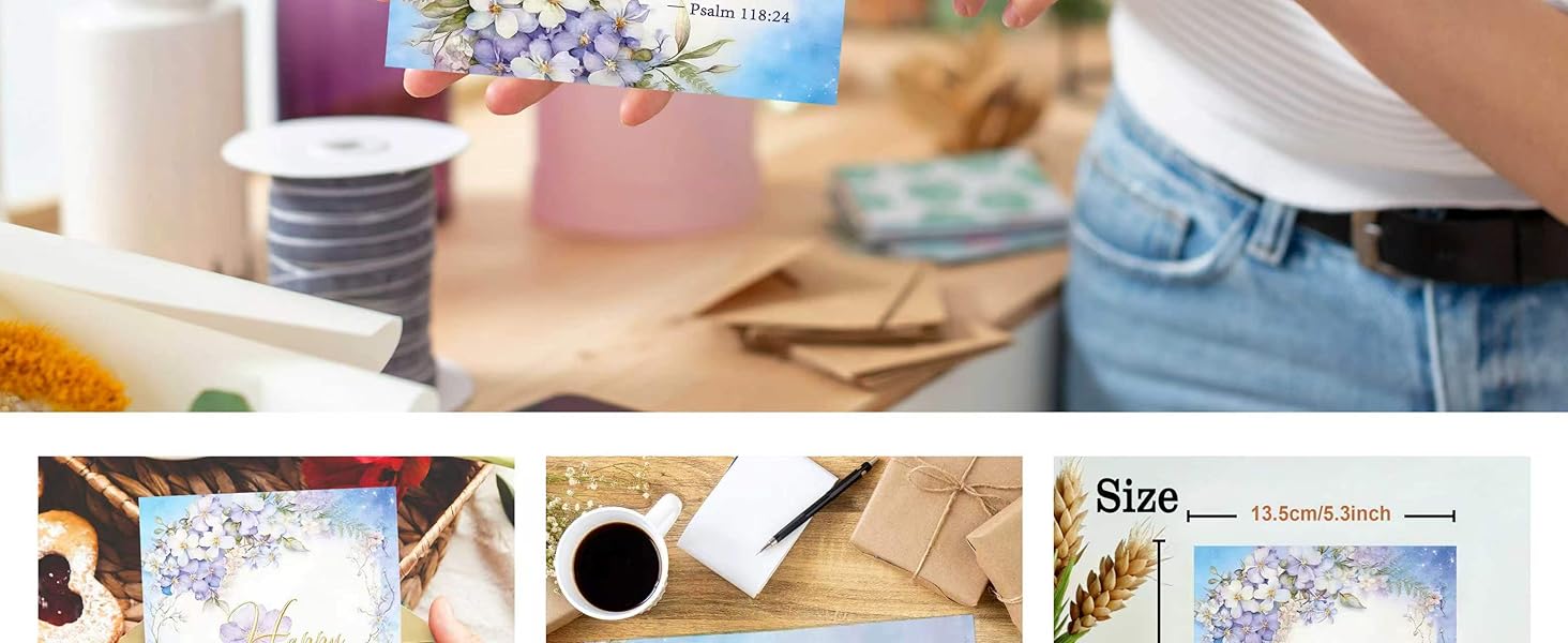 Elegant Christian birthday card size is (folded) 8"x 5.3" / 20.5cm x 13.5cm. It is Printed on high-quality and smooth 400gsm card stock, with Card x 1, Envelope x 1, Sticker x 1