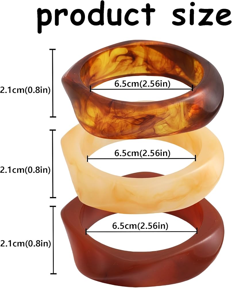 Material: This set of bangles are crafted from high-quality acrylic resin. Despite their bold appearance, these resin bangle bracelets are smooth and comfortable to wear all day long,with a polished finish that glides on the wrist.