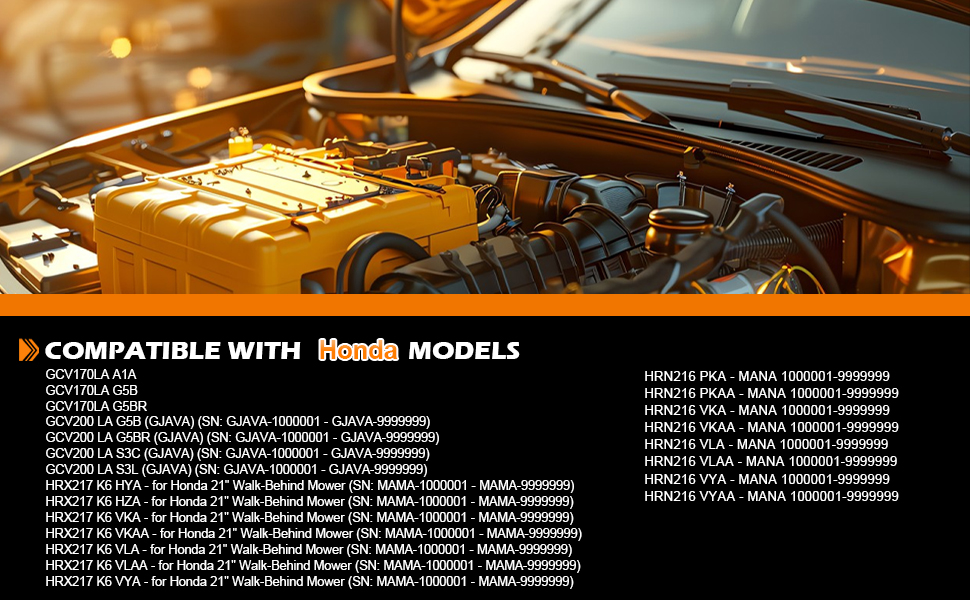 - ✔APPLICATION - Designed for Honda GCV170LA, GCV200 GJAVA-1000001-GJAVA-9999999, HRX217 MAMA-1000001- MAMA-9999999, HRN216 MANA 1000001-9999999