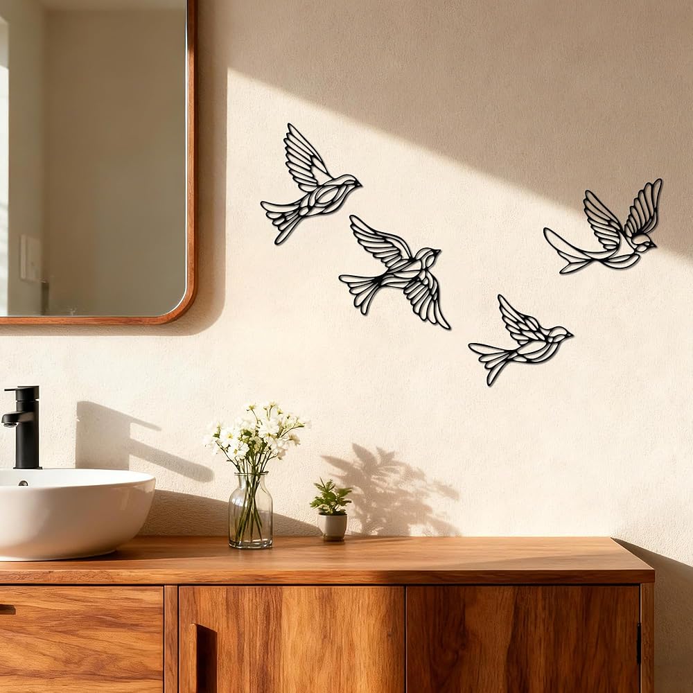 Elevate your living spaces with our exquisite Bird Wall Art Set, a perfect fusion of minimalist design and artistic expression. This metal bird wall decor captures the elegance and liveliness of four charming birds, crafted to bring a harmonious and friendly vibe to your home. Whether displayed as a cohesive group or as separate accents, these pieces serve as stunning bird wall art for any room.