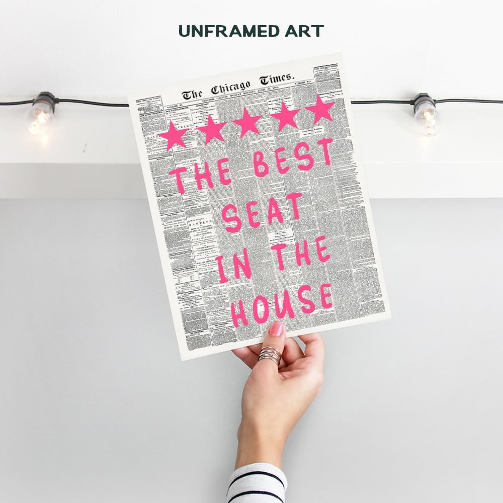 ديكور الحمام الفكاهي Preppy - لافتات ديكور جدران الصحف - عمل فني حمام الضيوف الوردي الملتوي - طباعة حمام مضحكة - فن جدار الحمام الصغير الانتقائي للنساء - صورة نصف مرحاض Y2k