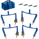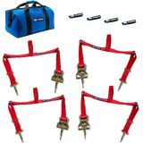 Developed specifically for the UTV and side-by-side market, our UTV Tire Net Pack uses our quality webbing to lock your wheels in place while allowing the vehicle's suspension to smoothly absorb bumps in the road. This pack includes four UTV tire nets, four strap wraps and one small duffle bag. Our Large Adjustable Tire Net Pack has been specifically designed to perfectly fit the most popular UTV tires in this larger size, including Kanati Mongrel, STI Roctane and EFX Motohammer, or tires with up to a 35" tall profile. The added depth of these wheel nets ensures a sufficient portion of the tire is held in the "basket" of the net. Each wheel net tie-down is constructed using 2" wide 12,000 lb. capacity webbing, over-stitched for an additional margin of safety. This setup will work well with even the heaviest factory UTVs. The adjustable design means you can still use it if you choose to run the OEM tires for a while before deciding to upgrade to a different or larger tire. A simple adjustment allows you to use this on those smaller stock tires as well as on a larger aftermarket choice. Your UTV Tire Net Pack comes with Mac's Strap Wraps. After securing your vehicle, use these to neatly hold excess strapping in place and store them in the included bag.