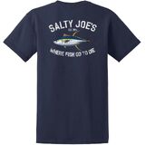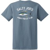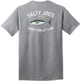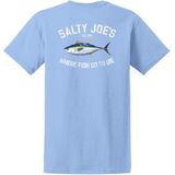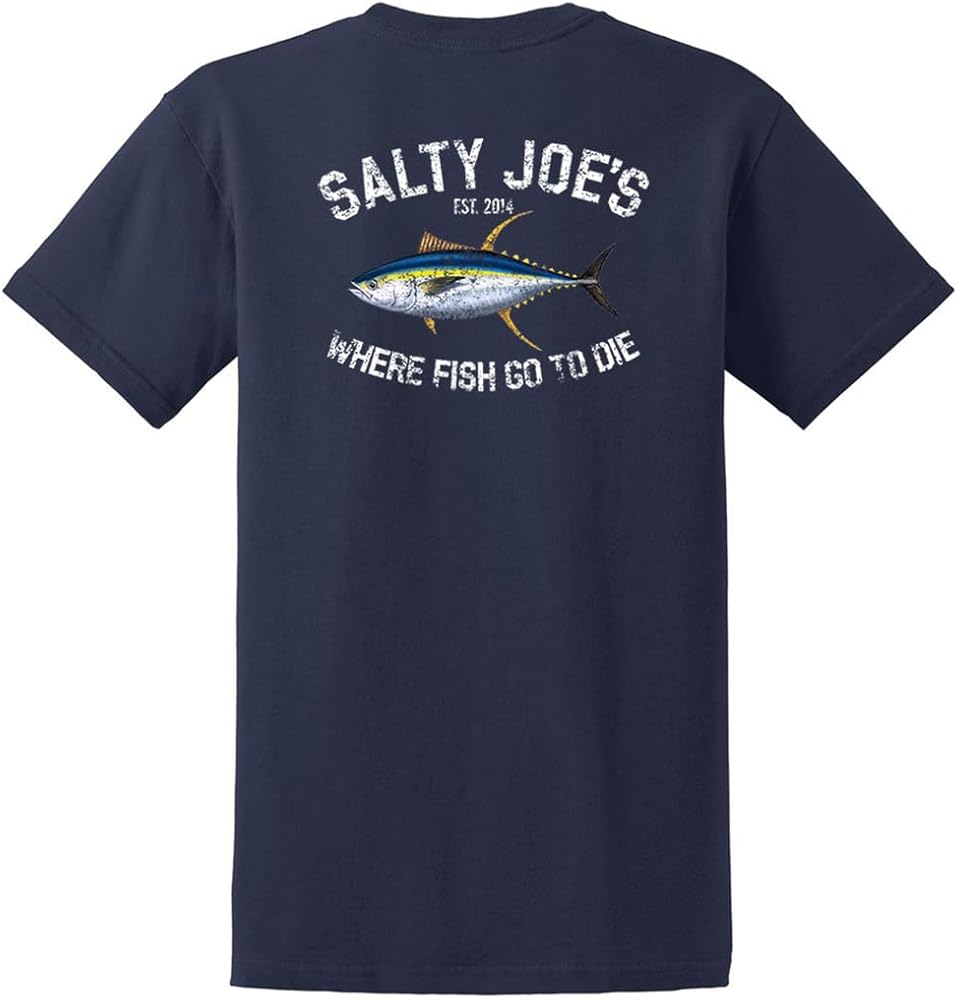 Stay comfortable and look stylish with Salty Joe's Men's Tuna Logo Heavy Cotton Tees. This is the casual shirt every man should have. The soft-spun cotton material ensures a gentle touch on the skin, making it ideal for daily wear. This popular style shirt features a rib-knit collar for a classic look, and the back neck tape, stretching from shoulder to shoulder, enhances its durability. Choose this Tuna logo-adorned heavy cotton tee for a laid-back vibe and everyday convenience.