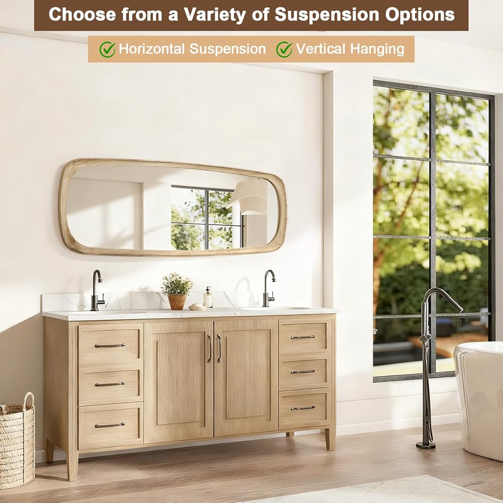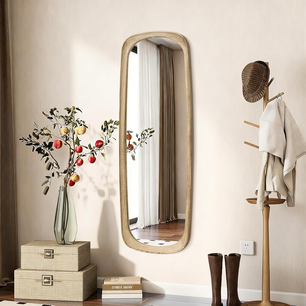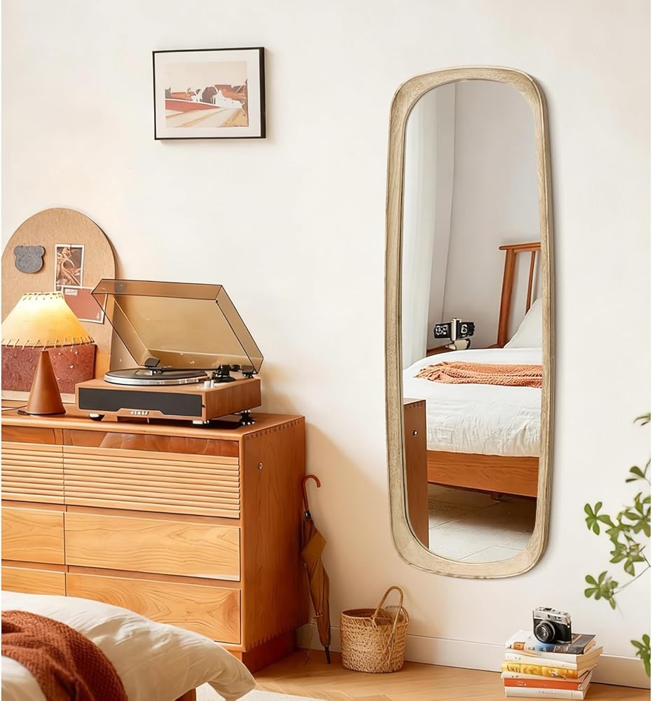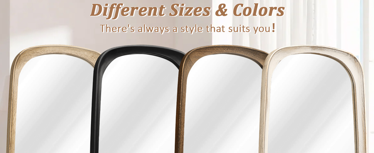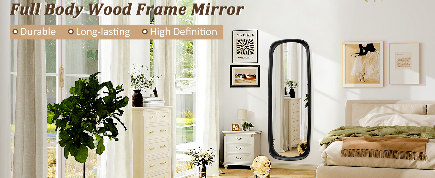 Arched wooden frame: Unlike traditional mirrors, this full lenght mirror has arcs at the top and bottom, giving it a softer look that suits different spaces. The high-quality wooden frame has smooth edges and a delicate touch, and is finely processed. The natural grain and texture of the wood add a warm and natural atmosphere to the mirror.