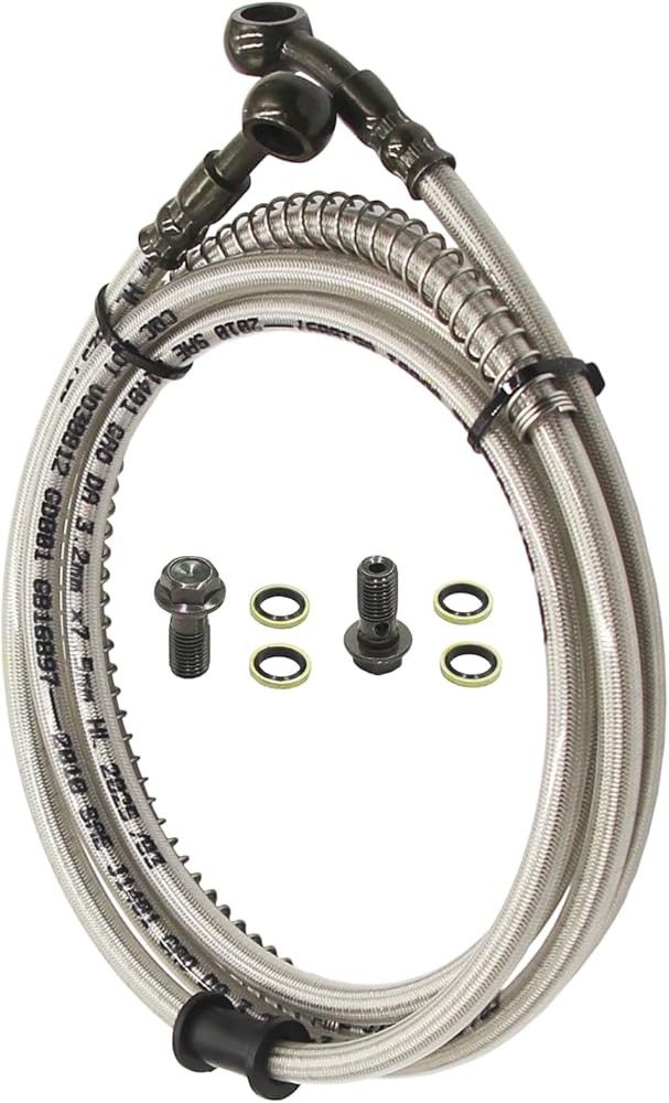 - Package Includes: 1x 1800mm Brake Hose Line + 2x Bolts + 4x Gaskets + 2x Cable Ties