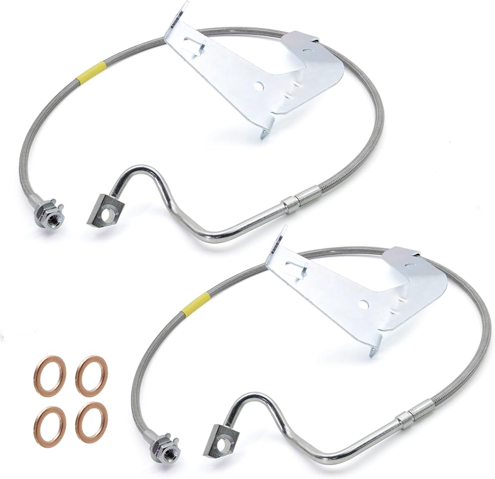 The braided stainless steel exterior prevent the lines from the damage of off-road debris, rocks and mud. High Quality hollow fasteners at both ends of each brake line and S at both ends provide a leak-free flow path
