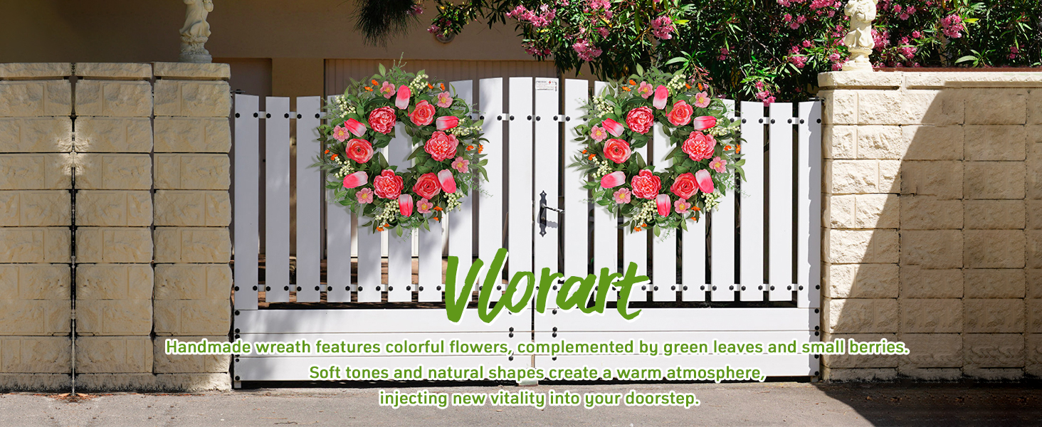 【Made to Last】Crafted with premium silk florals and reinforced wiring, Vlorart artificial wreath holds its shape season after season. The fade-resistant materials ensure the wreaths' vibrant colors stay bright, whether displayed indoors or covered outdoor spaces—no watering, no wilting, just effortless elegance.
