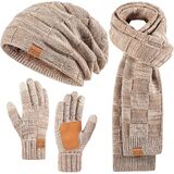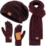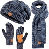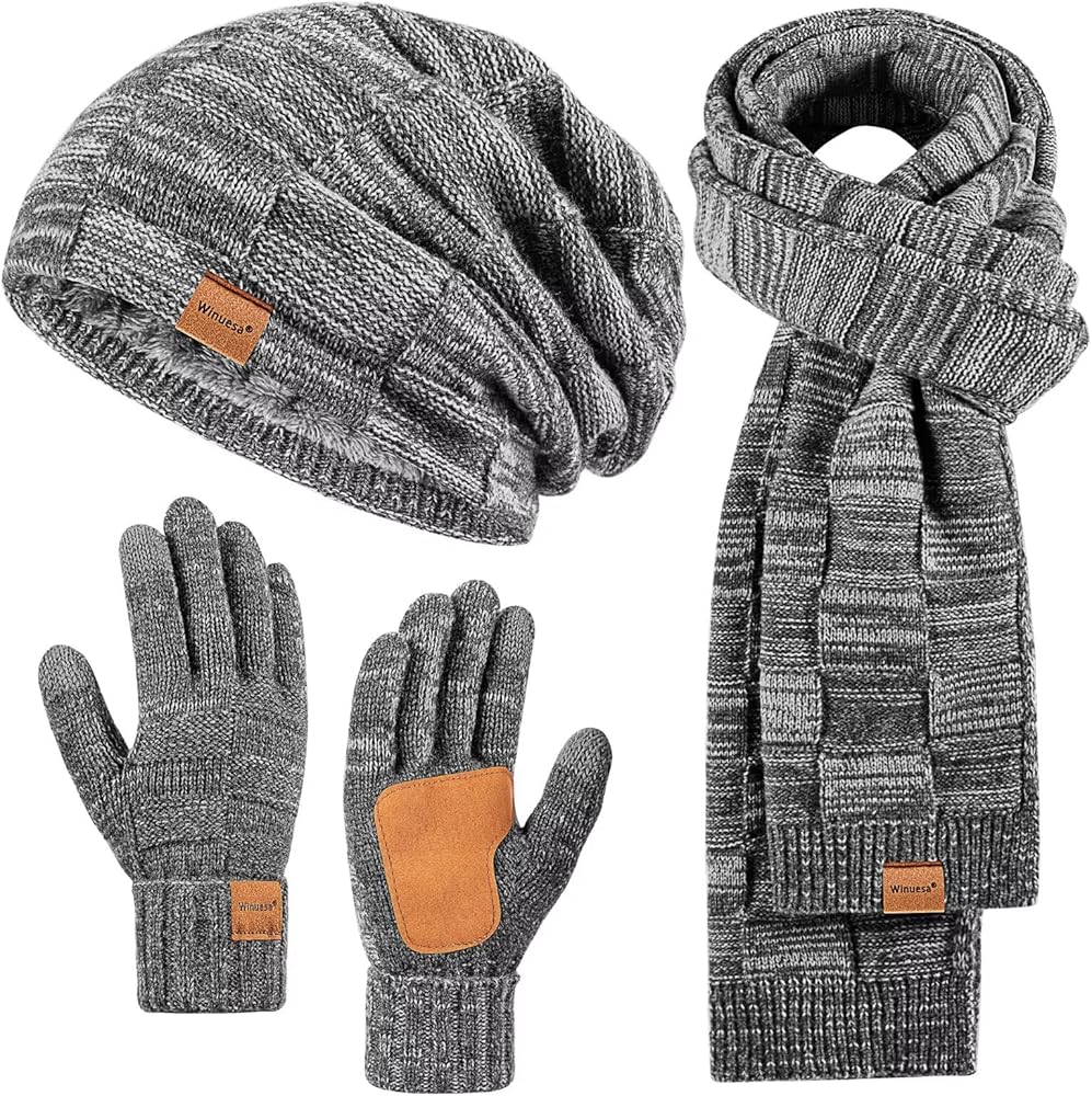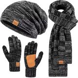 Winter Hat Gloves Scarf Set for Men Women – 3 in 1 Warm Gift Set with Touchscreen Gloves, Beanie & Long Scarf for Cold Weather Protection
