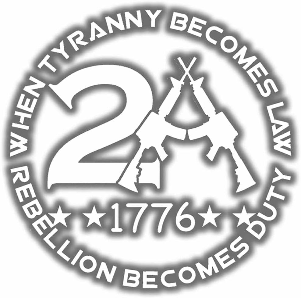 AG - When Tyranny Becomes Law Rebellion Becomes Duty 2nd Amendment 1776 Gun Rights Decal Sticker Patriotic Stickers for Car Truck SUV Windows Laptop 5.5 in White