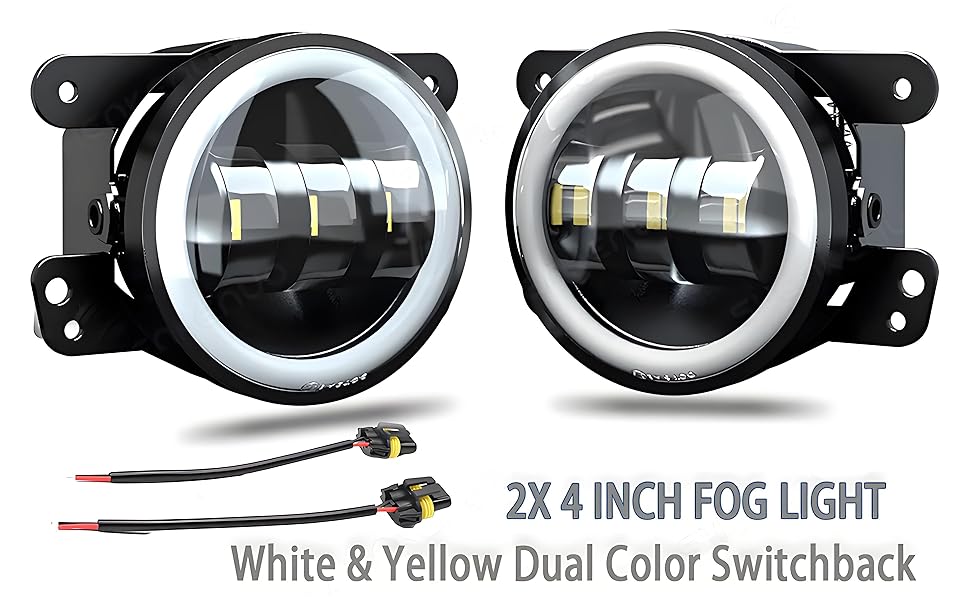 4 inch led fog light: 6500K fog light, with white DRL and amber turn dignal. Halo ring design, enhance the look and performance of your vehicle with the next generation of led lighting. Package including: 2pcs led fog light + 2pcs H11 conversion adapter wires.
