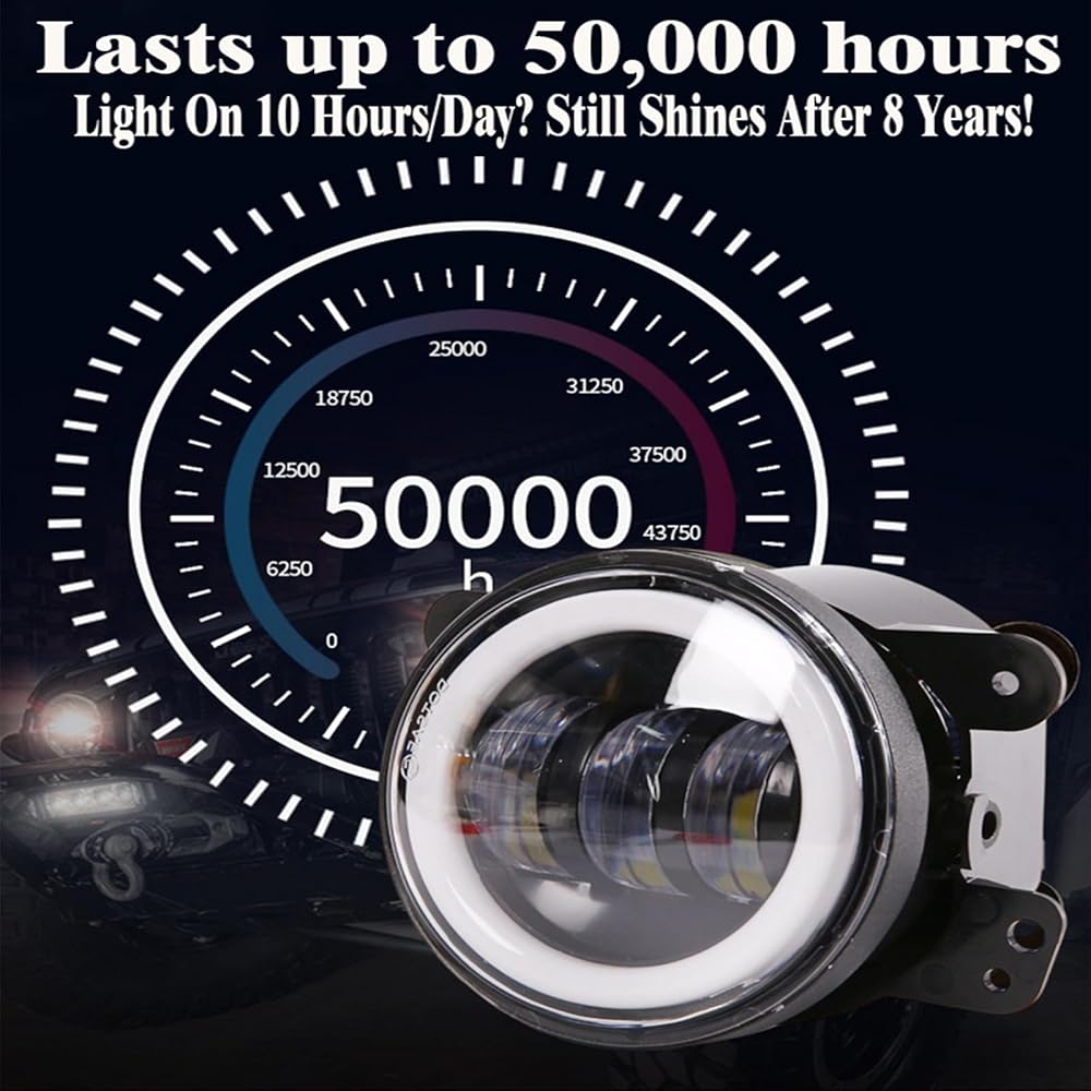 High Quality: Our halo ring 4 inch fog light adopt high quality chip, 100% brighter, higher color temperature and a much wider field of light dispersion than stock halogen lamps and HID headlight, last more than 50,000 hours,DOT approval, IP67 waterpreef. Perfect choice if you want to upgrade your halogen fog lights to LED driving fog lamps.