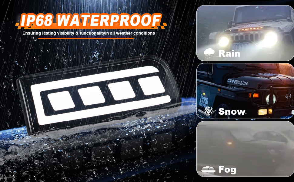 【IP67 Waterproof & All-Weather Durable】Built to withstand the elements! Rated IP67 waterproof to resist rain, snow, car washes, and dust ingress. Constructed with U-V-resistant materials to prevent fading and cracking for long-lasting performance in any weather.