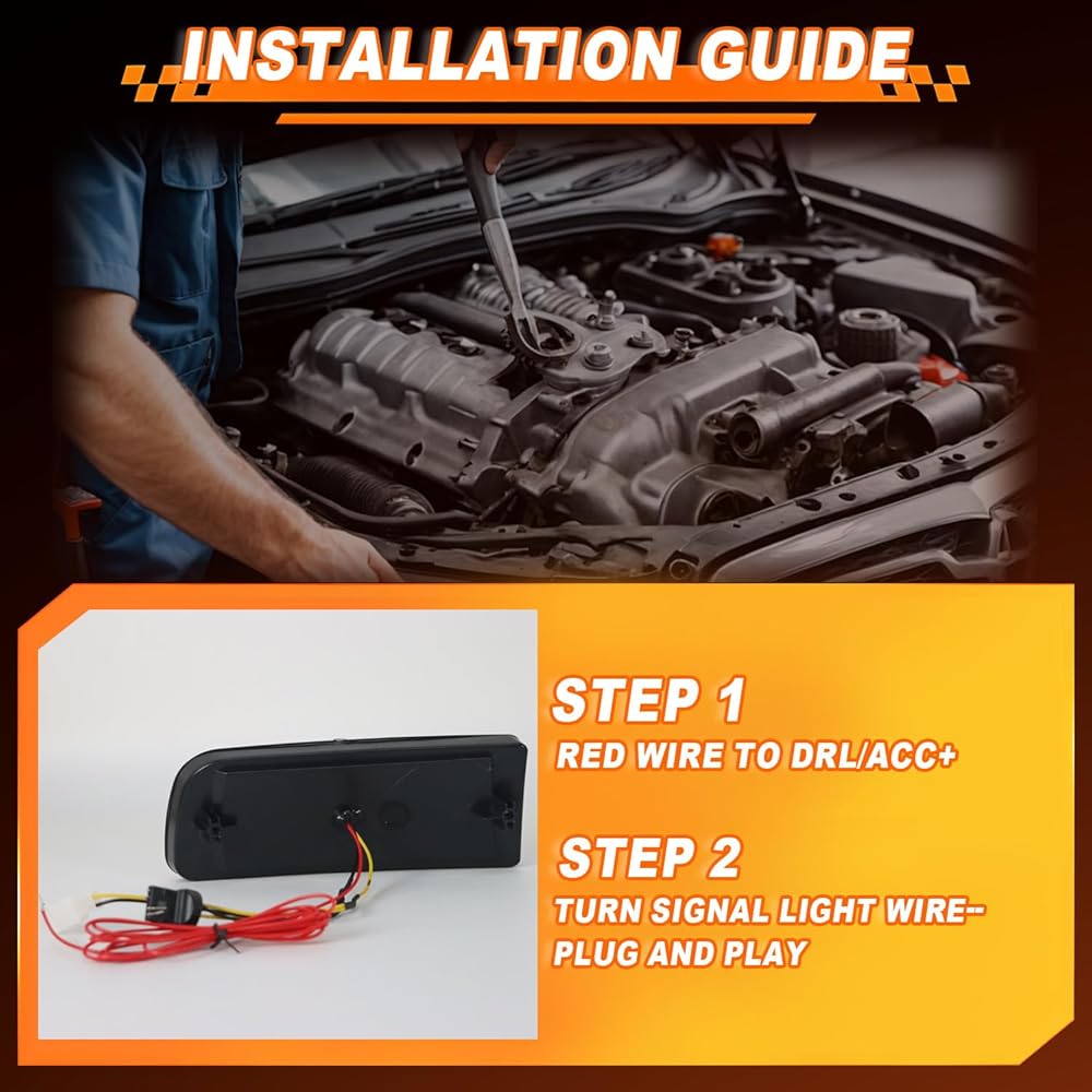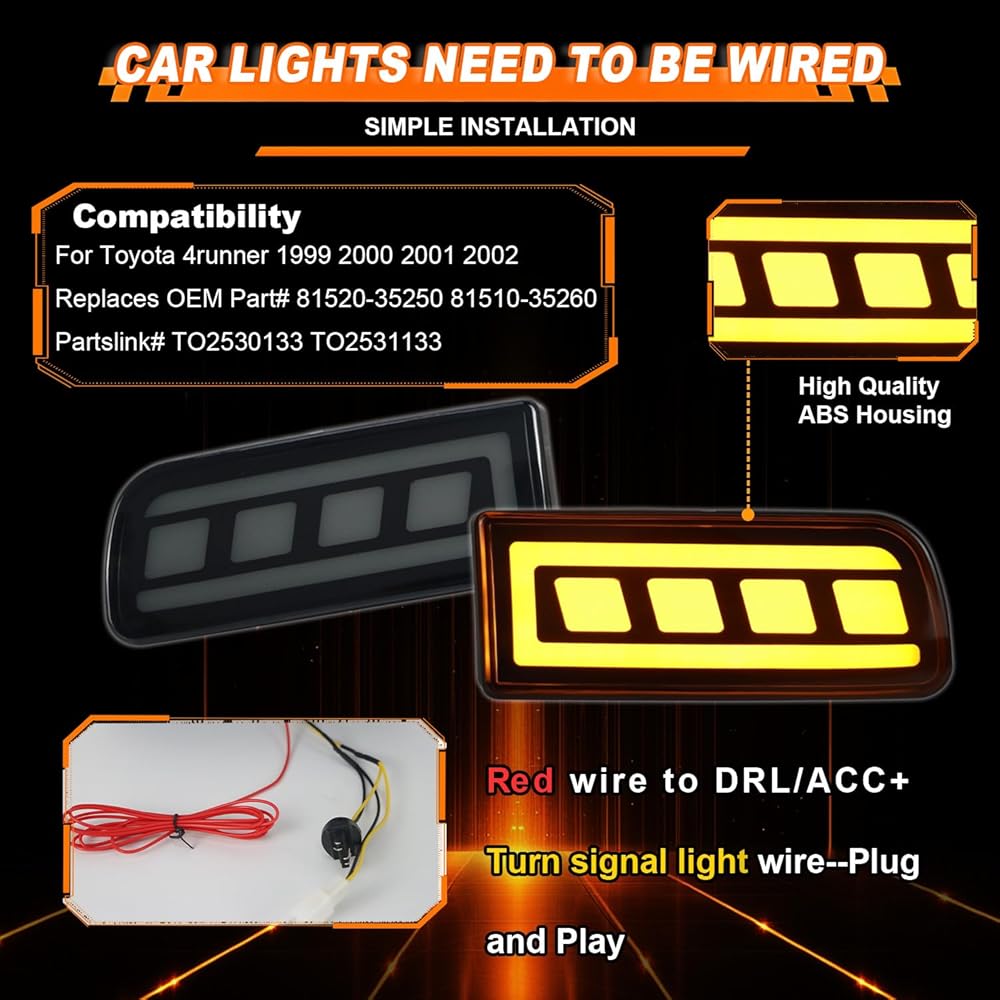 【Simple Installation】Simple wiring is necessary. Red wire to DRL/ACC+ , Turn signal light connector plug with OEM sockets . Upgrade appearance for your vehicle without modification.Makes your car unique and stand out!