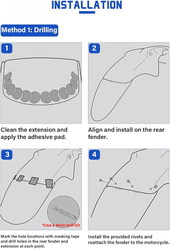 This Hugger Extension is installed on the back of the rear fender with the high self-adhesive included in the kit.