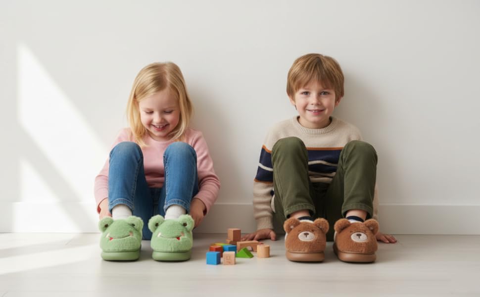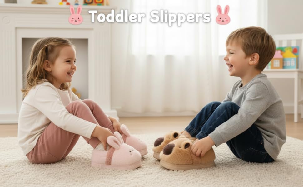 【CUTE CARTOON DESIGN】Our toddler slippers feature a variety lovely cartoon animal patterns, including bunny, bear, frog, capybara, etc., which is attractive for kids and they will fall in love with these house slippers at first sight.