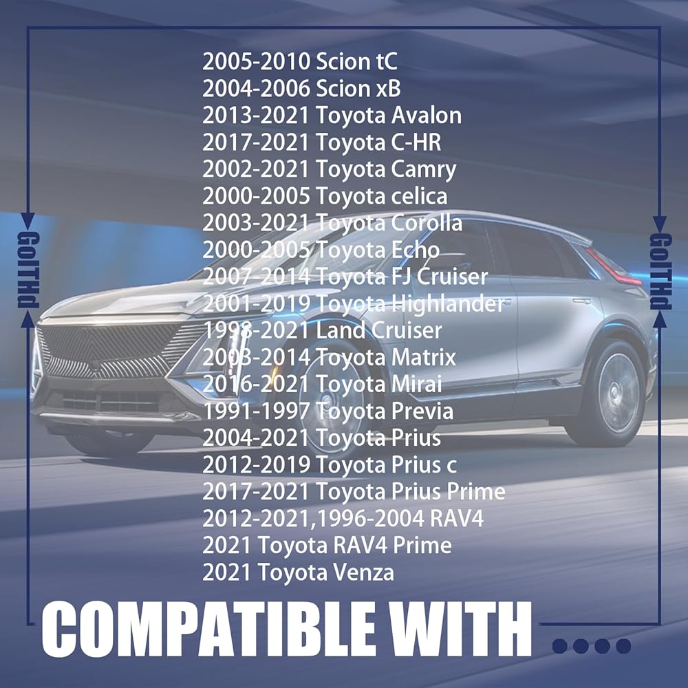 【Compatible with】 - Lexus: 2007-2017 LS460, 2018-2021 LS500, 2018-2021 LS500h, 2008-2016 LS600hL. Toyota: 2013-2021 Avalon 2017-2021 C-HR, 2002-2021 Camry, 2000-2005 Celica, 2003-2021 Corolla, 2000-2005 Echo, 2007-2014 FJ Cruiser, 2001-2019 Highlander, 1998-2021 Land Cruiser, 2003-2014 Matrix, 2016-2021 Mirai, 1991-1997 Previa, 2004-2021 Prius, 2012-2019 Prius c, 2017-2021 Prius Prime, 2012-2021 1996-2004 RAV4, 2021 RAV4 Prime, 2021 Venza. Scion: 2005-2010 tC, 2004-2006 xB