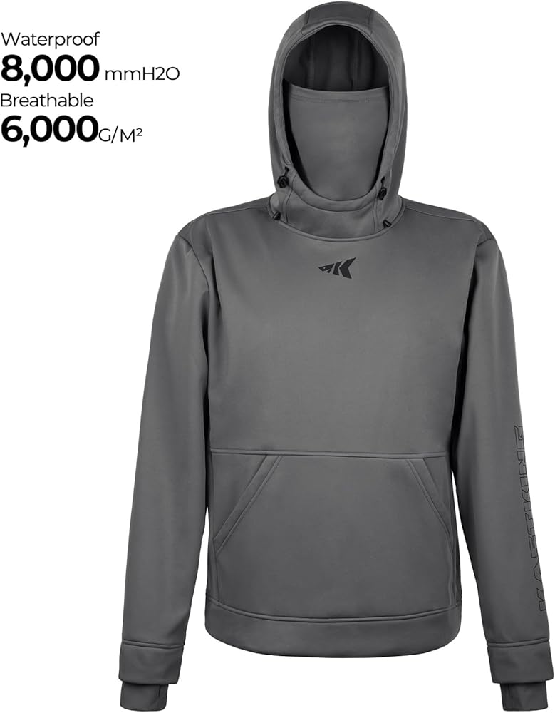 WARM & BREATHABLE – Stay warm and dry on the water in the KastKing Mountain Mist Fleece Hoodie. The 8,000mmH2O/ 6,000G/M² Membrane laminated mid-layer is breathable and flexible so you can stay dry and warm, but not too warm. The thick, fleece lining is warm and water-resistant enough to be part of your fishing, hiking, or climbing apparel, making it the perfect hooded sweatshirt for almost anywhere.