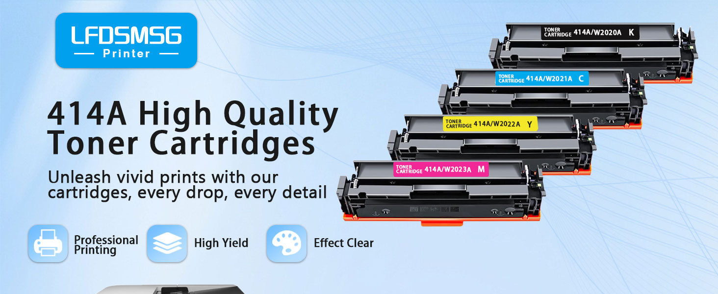 High Page Yield:414A black toner cartridges high yield up to 2400 pages and 2100 pages for per color toner cartridge(Letter/A4, at 5% coverage)