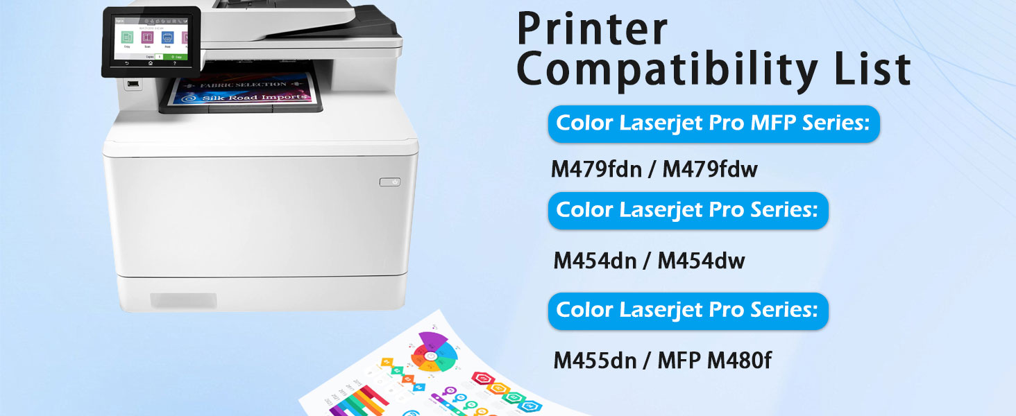 414A Toner Cartridges set 4 pack Compatible Printers: compatible with Color LaserJet Enterprise M455dn MFP M480f, Color LaserJet Pro M454dn M454dw MFP M479fdn M479fdw Printers toner