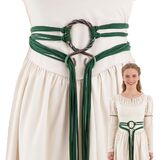 Functional & Stylish Accessory: Combines classic Norse aesthetics with practical use, serving as a waist belt for medieval dresses and a statement piece for Viking costumes; the brown suede base matches various color schemes of Renaissance and pagan outfits