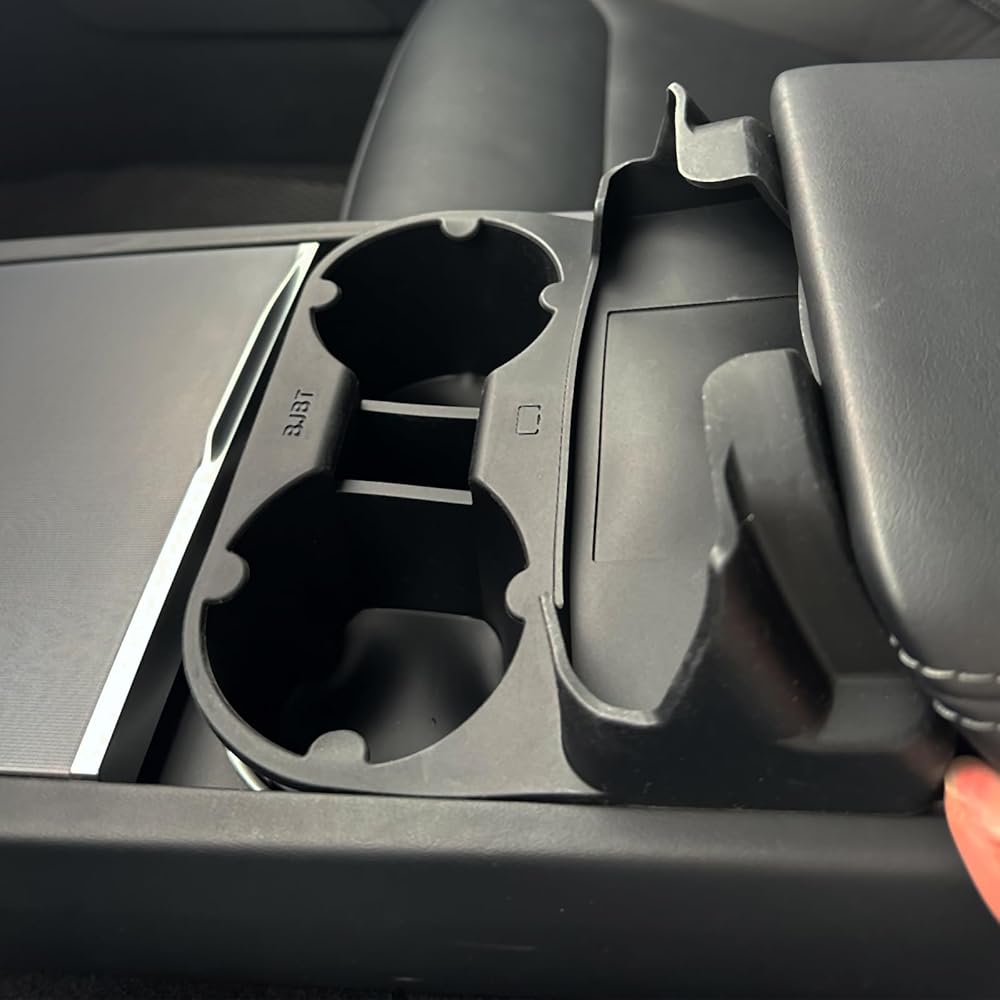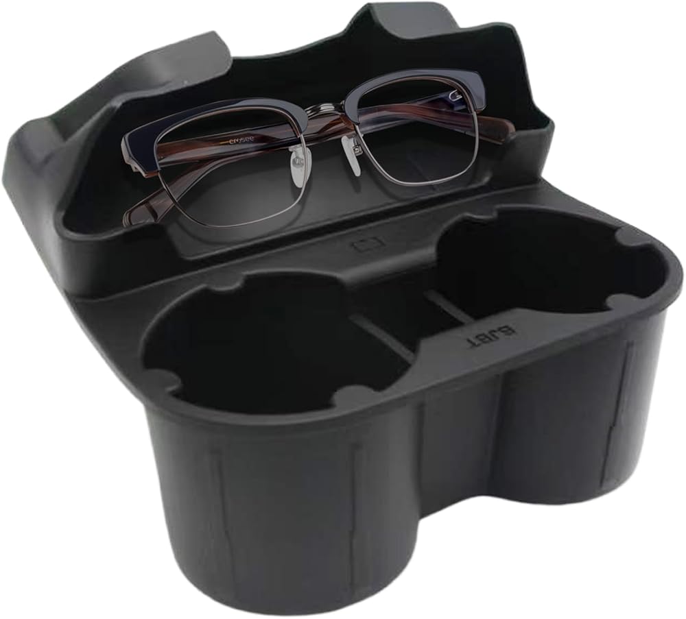 Transform your Tesla Model 3 or Y's cup holder area into a more functional space with this innovative 2-in-1 cup holder insert and storage solution. Designed specifically for 2021-2023 models, this adapter enhances your vehicle's interior organization while maintaining a sleek look. The insert features a dedicated compartment for storing your sunglasses or reading glasses, keeping them easily accessible yet protected from scratches. The cup holder portion is engineered to securely hold your beverages, preventing spills during your drive. This practical addition to your Tesla not only maximizes storage efficiency but also seamlessly integrates with your car's existing interior design. Perfect for daily commuters and road trip enthusiasts who want to keep their essentials within arm's reach while maintaining a tidy cabin space.