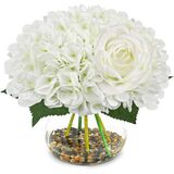 Perfect Size: Hydrangea artificial flowers, total size 9.44 inches * 8.66 inches, please refer to the picture for details on size. Faux hydrangea flowers in vase is perfect for home, office, living room, dining table, wedding, hotel and other central decorations. It is also the perfect gift for family and friends, and you will be pleasantly surprised to receive silk hydrangea flowers