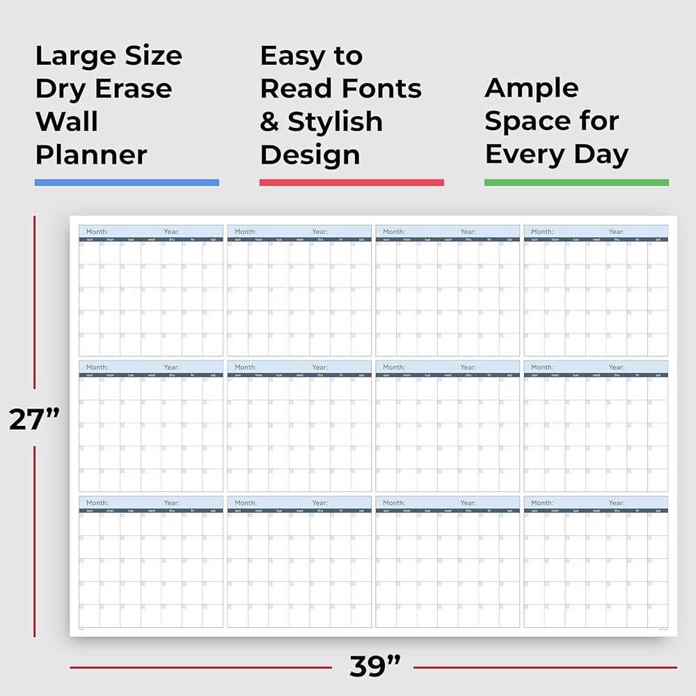 This undated large wall planner (39 x 27 inches) gives you the best of both worlds — a yearly view on the front to see the big picture, and a 3-month quarterly layout on the back to keep your focus sharp and actionable.
