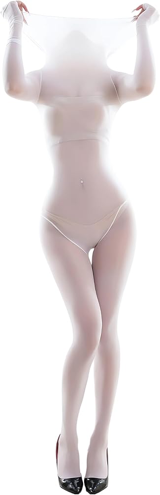Versatile Style: This glossy bodystocking features an integrated high-neck, hooded, and head-covering design, allowing seamless transitions between three distinct looks—each elevating sensuality to new heights