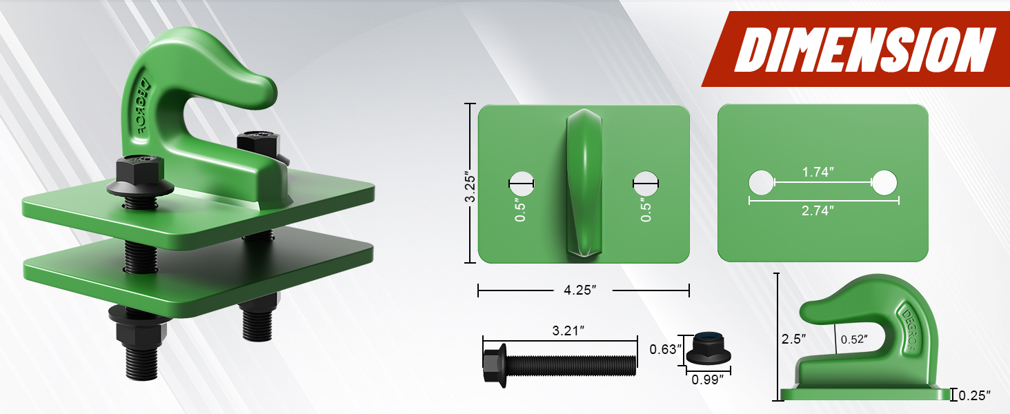 2-PACK TOW HOOKS: EilxMag 70 Level 3/8" Tractor Grab Hook Bolt-on Mount with Backer Plate, 4 reinforce plates,4Pcs of Grade 10.9 Lengthen Flange Bolts and Nuts.All component surfaces are galvanized and powder coated, allowing you to enjoy a convenient towing experience