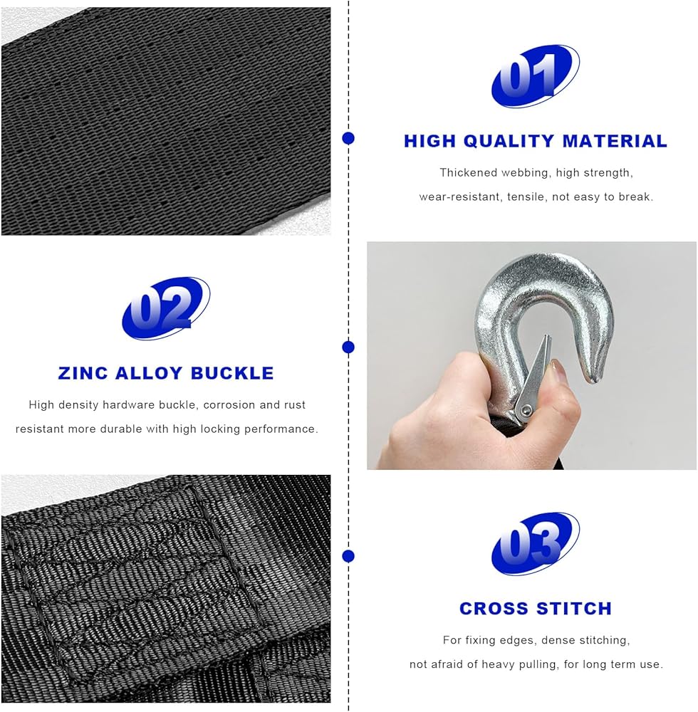 Elaborate Design: The end of our towing strap features a safety snap hook. This greatly facilitates snap closure and is not easy to fall off. The hook connection is sewn with dense stitching, which effectively disperses the tension and reduces the risk of tearing due to excessive localized force
