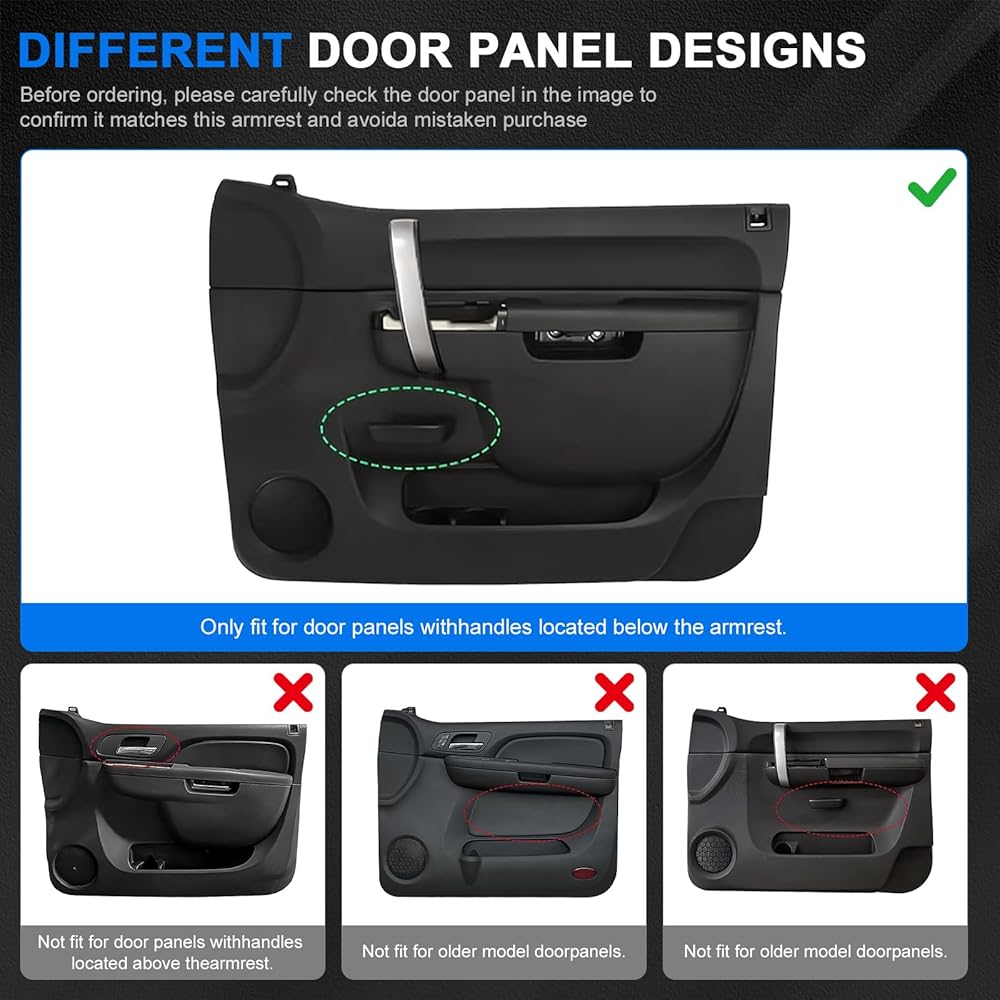 【Precise Vehicle Compatibility】This armrest repair kit is specifically designed for 2010-2014 Chevy Silverado 1500/2500HD/3500HD and 2010-2014 GMC Sierra 1500/2500HD/3500HD models. The custom fitment ensures proper alignment with door panels featuring a release handle located below the original armrest position.