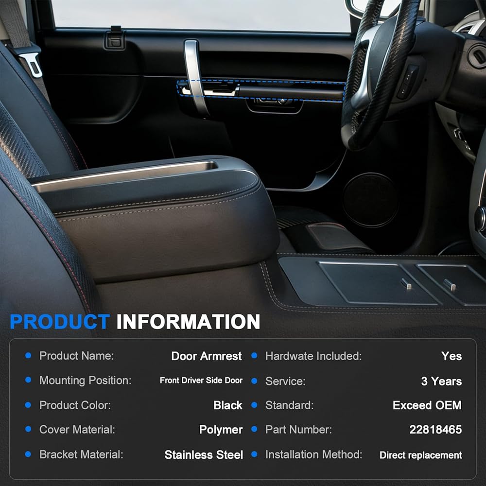 【Improved Comfort And Appearance】The replacement armrest restores driver-side comfort while enhancing interior aesthetics. The design maintains compatibility with original door panels while providing improved structural integrity and long-term reliability.