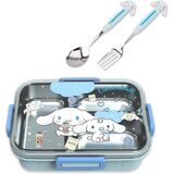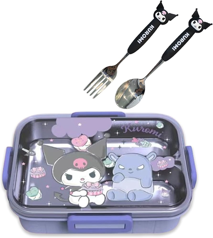 You can search 'Anime' in our store(Roffatide) for more Cute Cartoon or other anime element design products. Material: Plastic + Stainless steel.High-capacity: 750ml.Cute Cartoon: Cinnamoroll Melody Kuromi.Design: 4-point lock type lunch box. With double-layer heat insulation function, it can prevent fingers from being heated. Paired with a cute Cinnamoroll shaped spoon and fork.Stay Fresh: The 3-In-1 compartment design bento box can effectively prevent food from mixing together, separating vegetables, fruits, and snacks to maintain the original taste of the food.