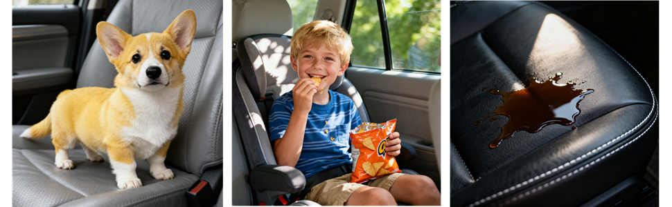 PREMIUM MATERIAL: Made of good quality microfiber fine leather, can withstand the friction in daily use, The surface of the seat cover do not penetrate stain easily, easy to clean, Wipe it gently with a towel and the stain will disappear.