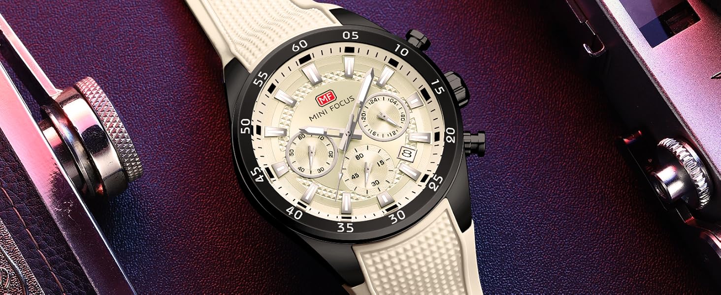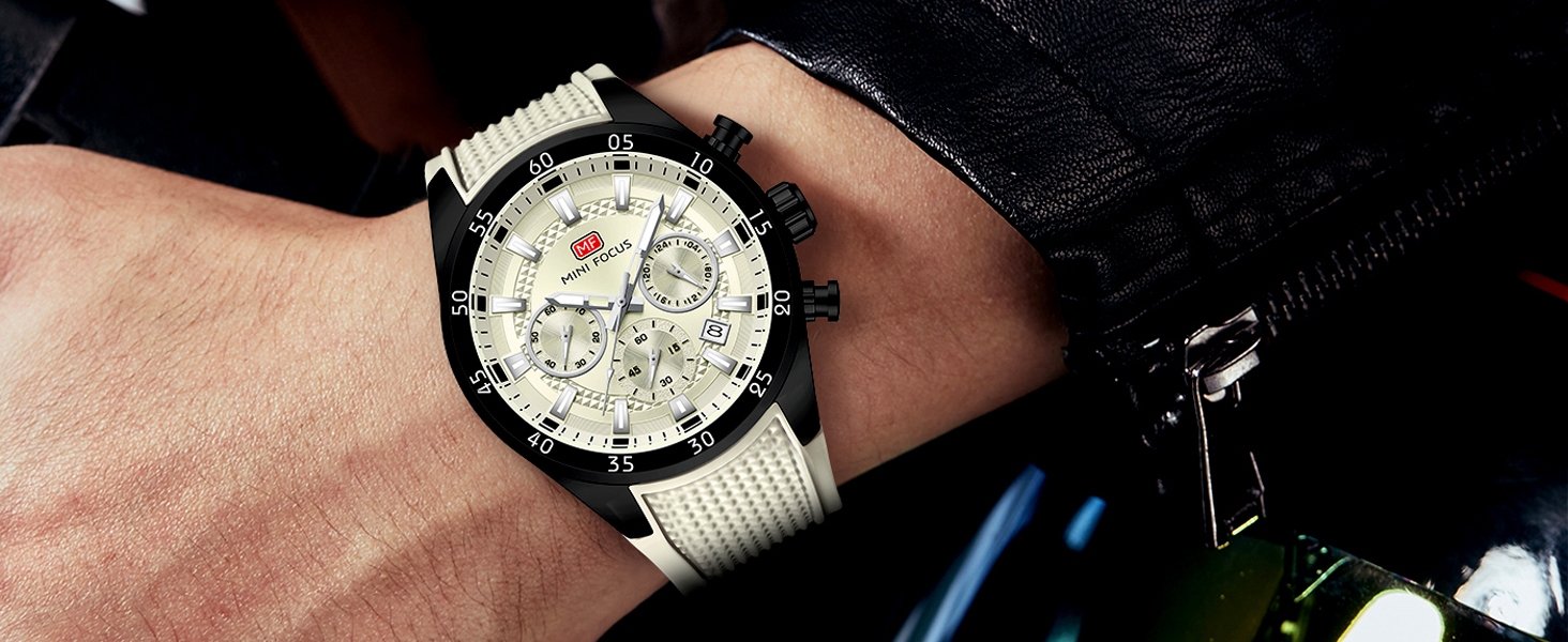 MINI Focus Men Watches Unique Casual Wristwatch (Chronograph/Waterproof/Luminous/Calendar/24 Hours) Silicon Band Fashion Watches for Men