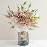 Fake Flowers with Vase: This elegant arrangement features vibrant hydrangeas and dahlias in a stylish vase, perfect for enhancing any space. Ideal for kitchen, living room, or office decor, it brings a touch of seasonal charm to your home in both fall and spring. This centerpiece is also a delightful choice for table decorations, adding a fresh and stylish touch to any setting.