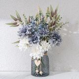 Timeless Blue Elegance: Showcasing classic blue and white hues, this faux flower arrangement brings a sophisticated and enduring charm to your decor. Its elegant color palette is always in style, adding a touch of timeless beauty to any space.