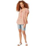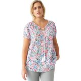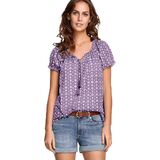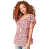 Ruffles at the elasticized cap sleeves & a braided tassel tie at the neckline add a feminine touch to this boho-inspired peasant blouse. Slight A-line silhouettebr>Scoop necklinebr>32" length; Hits at upper thighbr>Cotton Cambric br>Machine wash cold. Imported